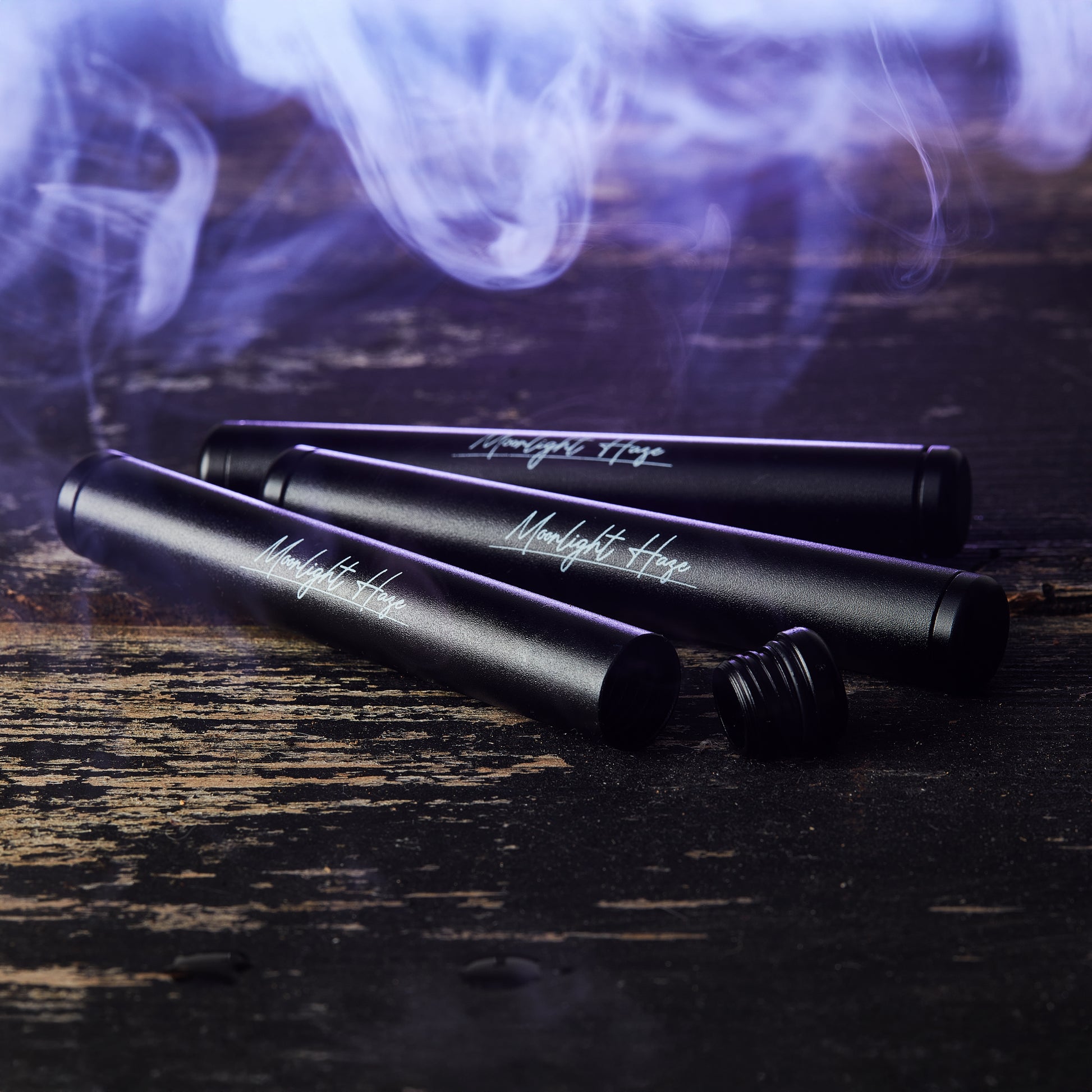 Keep your pre-rolls fresh and your vibes bright with the Moonlight Haze Doob Tubes! These aluminium tubes come in a handy 3 pack, each finished in matte black. The screw-capped ends with rubber seals lock in freshness and keep smells contained until you’re ready to unwind. Perfect for on-the-go or at-home storage, these doob tubes mix style and function in one playful package.